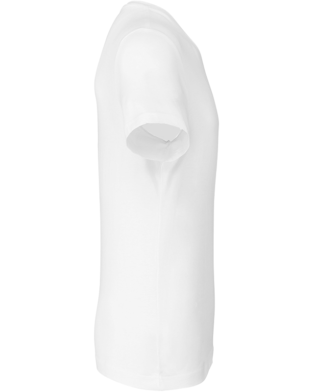 taillierter Schnitt, eingefasster Ausschnitt, Nackenband in Kontrastfarbe bei farbigen und weiß bei weißen Shirts, Doppelnähte,